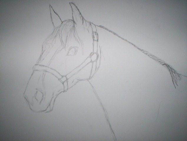 j'ai retrouvé aussi des photos que j'avais prise de la realisation portrait de la jument d'une copine que j'avais fait pour son anniv' mais bon les photos ca déforme à fond le dessin...