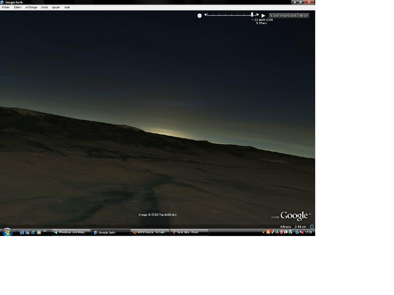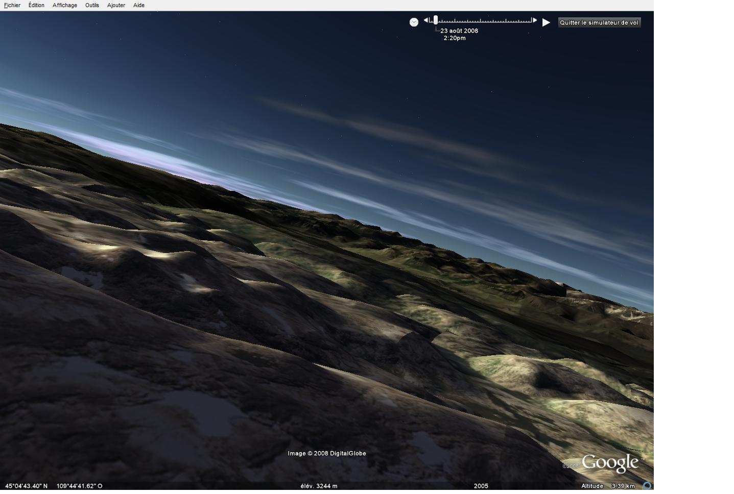Ne sachant où le caser, je remercie la création de ce topic pour vous faire part de mon admiration devant la dernière mise à jour de google earth, ils ont rajouté la luminosité du soleil en fonction de l'heure et ce, compris également le simulateur de vol.